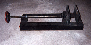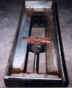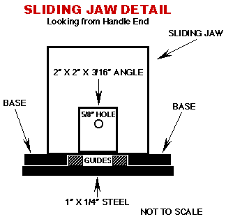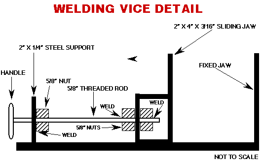 Building A Welding Vice from Scrap By: Bruce Bauerlein ![]() WELDING VICE I needed a portable, but durable welding vice for my welding projects. I couldn't find what I was looking for, so I built one out of scrap material. BASE The base is made from 2"x 2"x 3/16" angle iron, which is welded together to form a rectangle which will be the base. Make sure that both ends of the slot opening, in the middle of the base, are the same distance apart. This will allow the movable jaw to slide freely on the base. FIXED JAW For the fixed jaw, I used 2"x 4"x 3/16" angles welded together. I welded the angles to one end of the base with the 4" part up and facing toward the inside of the base. SLIDING JAW The sliding jaw is made from the same size angles welded together. Place the sliding jaw on the base with the 4" ends facing each other. On the bottom of the sliding jaw, place two 1" square by 1/4" thick pieces of steel to act as guides, so the jaw doesn't jam on the base as it slides back and forth. The guides should have about a 1/8" space between the outside of the guide and the base frame. This will allow the jaw to slide on the guides. Weld a piece of 1"x 1/8" piece of steel, which is cut to extend onto the base side pieces about 1" on each side. This will hold the jaw onto the base . Weld this piece only to the guide pieces, so the jaw will slide on the base. ![]() MOVING THE SLIDING JAW To move the jaw, I took a 1/4" by 2" wide piece of steel and drilled a 5/8" hole in it. I welded a 5/8" nut over one side of the hole. This is clamped to the end in the center of the base opposite the fixed jaw. Next, close the jaws and thread a 5/8 threaded rod through the hole. Then, place a piece of 2" x 2" x 3/16 angle iron about 2" wide on the outside of the sliding jaw, where the rod meets the jaw to form a box. Align the rod along the center of the base. Mark a spot on the box where the rod meets and drill a 5/8" hole for the rod. Then unclamp the piece with the nut. Thread a 5/8" nut onto the rod about 1" in. Then, place the rod through the new hole and put another 5/8" nut on the other side. Close the nuts together until there is a 1/16" space between each nut and the angle iron. This allows the rod to spin freely in the steel. Tack the nuts to the rod only. Place this assembly on the base with the angle iron end on the sliding jaw, again forming a box. The flat piece with the nut is clamped to the end of the base. Both pieces are then welded in place. ![]() HANDLE For a handle, I welded an old round valve handle from a 4" gate valve onto the end of the threaded rod. The round handle is easy to turn while wearing heavy welding gloves. The finished product is a vice that is both durable and useful in holding various parts to be welded. Various views of the completed vice: ![]() ![]() ![]() I didn't give any sizes of the material used to make the vice, as you can use any dimensions you want to suit your needs. |