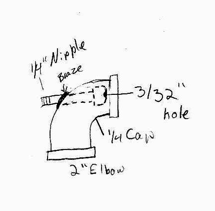 Propane and blower connection In one 2`` elbow drill a 9/16`` hole in line with the centre of the pipe.