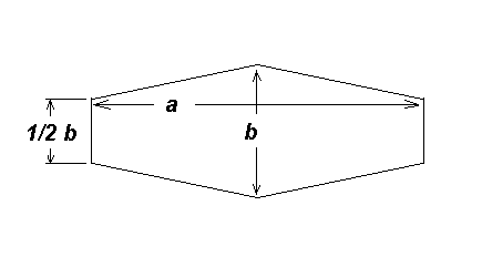 The next step is to make your pattern. You will need to measure your bent joint, with padding in place, perpendicular to the limb, across the outer point, from the ends of the crease formed inside the bend of the joint. Call this "A". Then calculate 45% of "A". The result is "B". Use these dimensions to lay out a pattern as indicated in the diagram below. At one end of the pattern, add a fan or wing. This can be virtually any shape, but should be approximately "B", top to bottom and should extend approximately "B", beyond the end of the pattern. At the other end, add a curve, from corner to corner, to cover the inside of the joint. This is your pattern for the cops. Then make a pattern for the lames, as in this diagram.