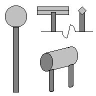 Stakes ![]() Ball stakes are mainly for planishing, and mine are made from very large bearings [3" and up] welded to 1" round bar stock. A piece of 1.5" square bar stock welded at a 45 degree angle to 1" round bar stock can be used in the finishing of straight ridges, or to make sharp-cornered bends on tabs, and much more. Don't forget to blunt that top edge just slightly. I've also got a 4" diameter cylinder on two bars [fits the two holes in my block]. One end of the cylinder has a blunted edge, and the other is relatively sharp-cornered. This piece is nifty for bending lames, cuisses, vambraces, etc. with a smooth curve. I use the edges for finishing crosswise ridges on curved pieces, as well as to start edge rolls. This article does not by any means exhaust the possibilities of armor tool making, but I think there is enough here to get us started. I'll post addenda if I come up with something else particularly useful. |