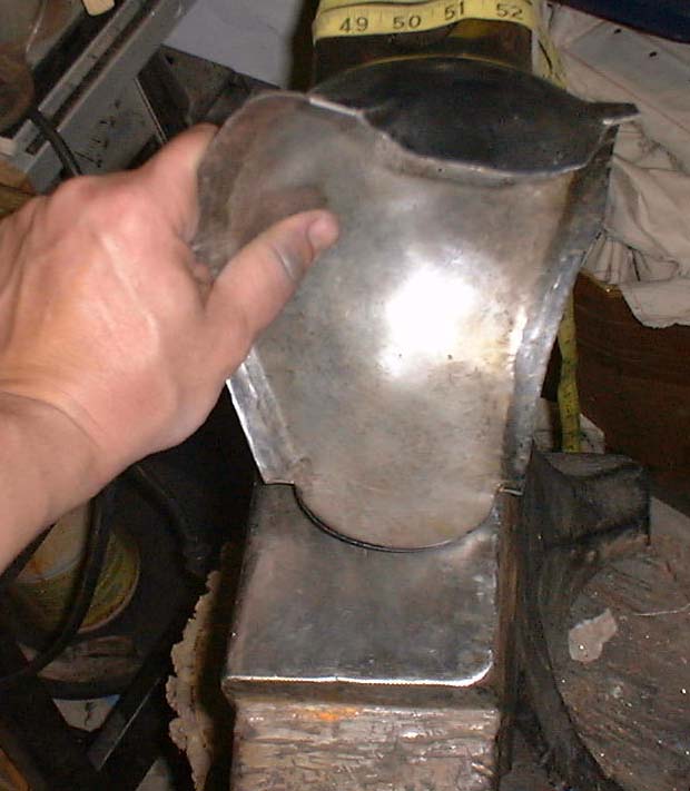 Now, go back and hang the flared edge off the edge of the anvil. LIGHTLY tap