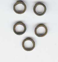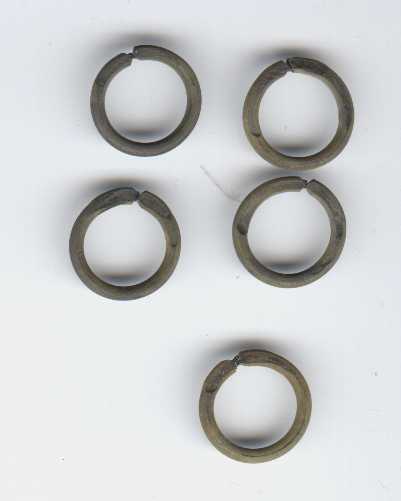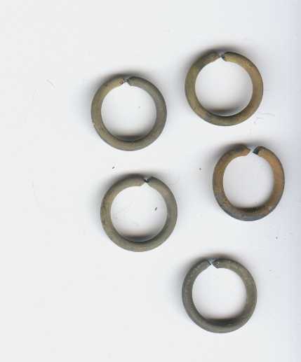 At this point, depending on the wire type you used, It may be necessary to anneal again. I personally had to, but if you choose a naturally soft wire, you might not need to. After annealing (or next, if you choose not to) you will need to flatten the overlapped area. Some people so not do this, but for the maille to look authentic, the 2 overlapped parts must fit  into each other perfectly, a feat only accomplished by a post overlap flattening. If all is done well, and you did the pre flatten, a few hardy hammer strikes is all that is needed to produce rings similar to these: