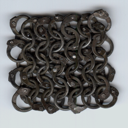 Riveted maille has long been an elusive art, oft spoken of with much more difficult that it really is. In this essay, It is my intention to shed some light on a simple, effective method of producing riveted maille. Before I go any further, I would like to thank the following people: Stephen of Forth Castle, his study into techniques, as well as oft questions define the impetus for my interest; Eric Schmidt, he also shed some light ; both of these gentlemen frequent the Armour Archive   Sara Trice, also a good source for information, as her Sara's chain mail connection is a temple of maille.