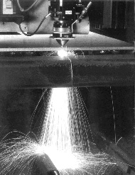 cutting also uses an air compressor to drive out the kerf in a way similar to plasma cutters)