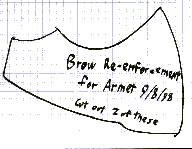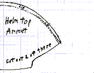 - Fit the brow reinforcement plate on the helm top and draw an outline