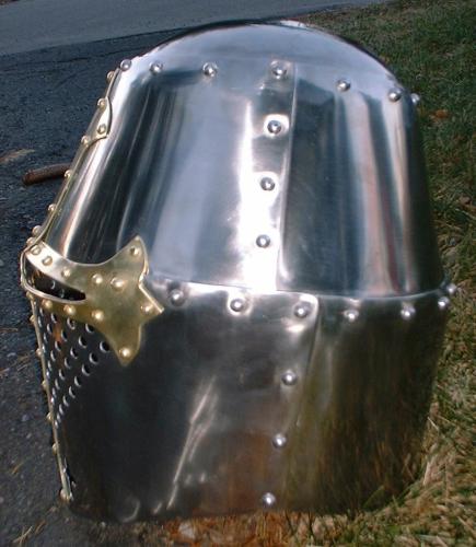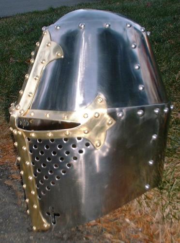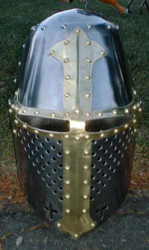 Great Helm (c. Late 13th to Early 14th Century) with Brass Cross :