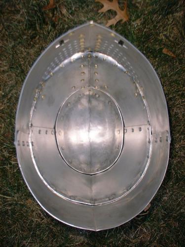 top of the helm (on the inside). Rivet the cap plate into place.