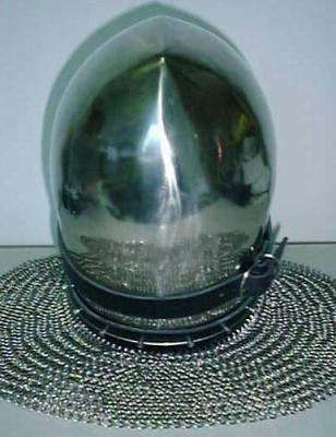 (currently) 12 lbs. with camail. Sheet metal is 14ga. 304 stainless