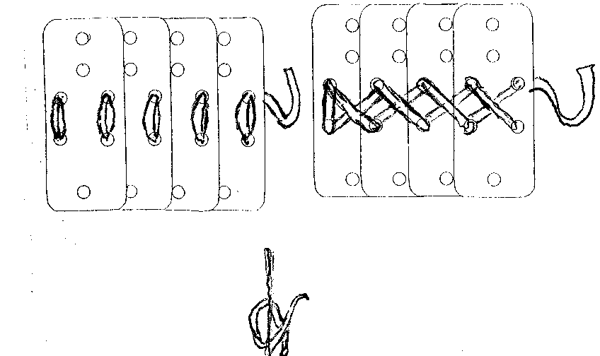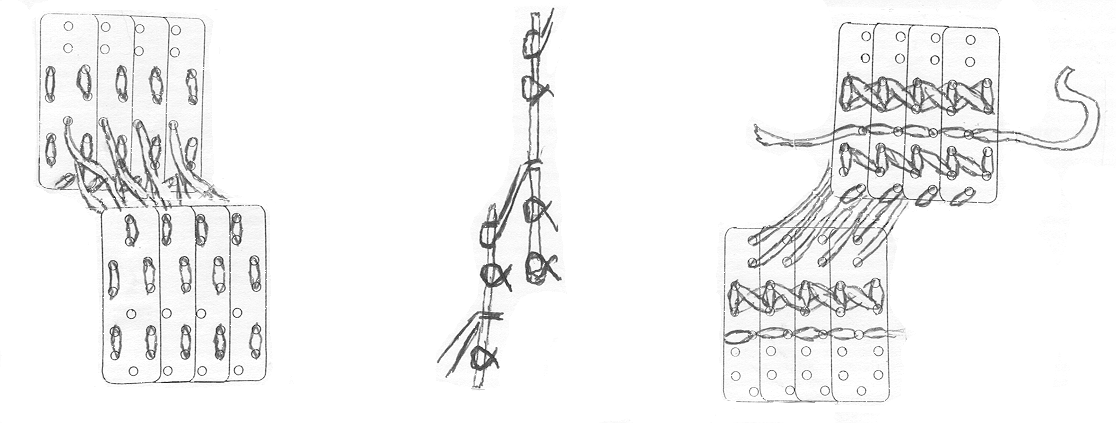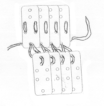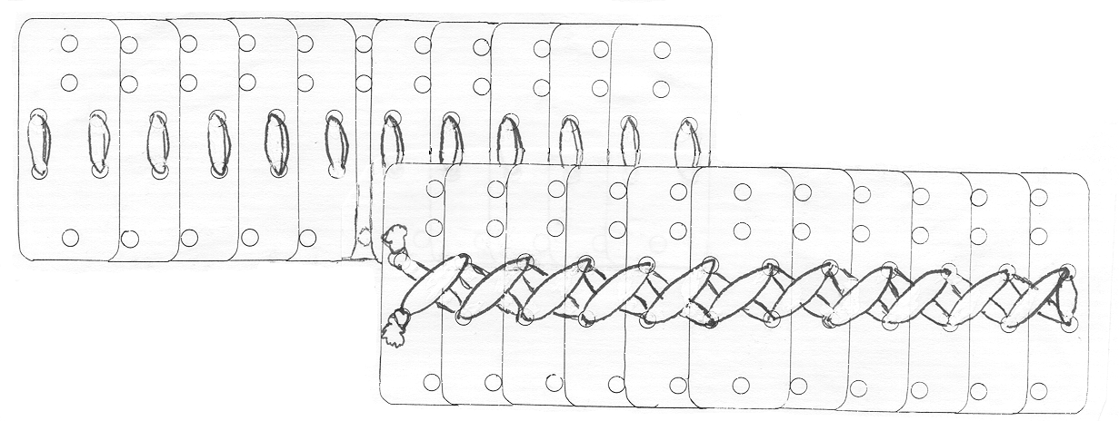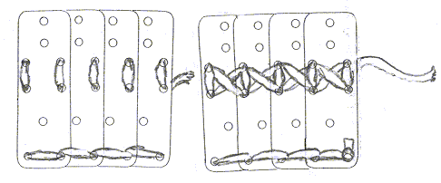 Figure 2 shows how an individual row is laced, in front, back, and side