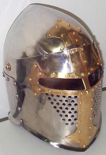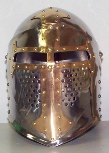 The helm is made from 14 ga. 304 Stainless Steel with a 16 ga. red brass cross.